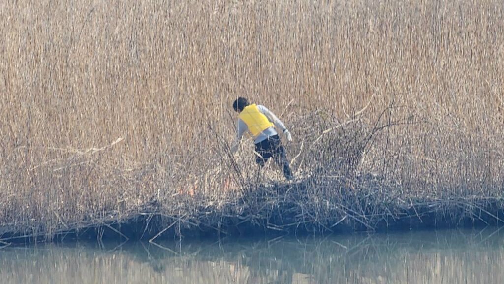 ヨシ焼きとは、古いヨシを焼くことで植生環境を保ち、
